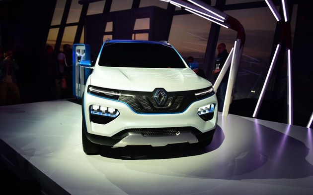 外觀部分,K-ZE 概念車看起來像更科幻的雷諾 KWID,而且二者是基于同一平臺開發的。雷諾標志性的大嘴型中網搭配 LOGO 鑲嵌其中,兩側細長的 LED 頭燈與格柵融為一體,下方 3 顆 LED 燈組合而成霧燈,整個前臉簡約而動感。