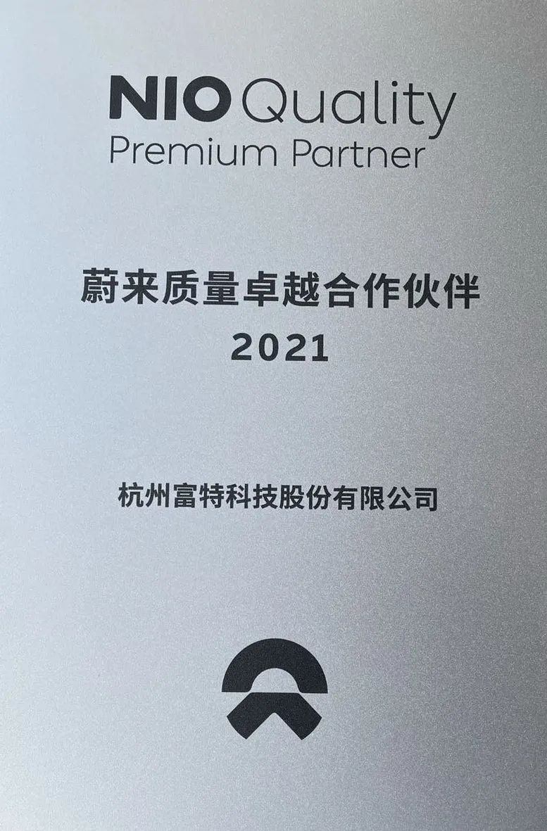 質量是命 | 富特科技榮獲2021蔚來首屆質量卓越合作伙伴獎